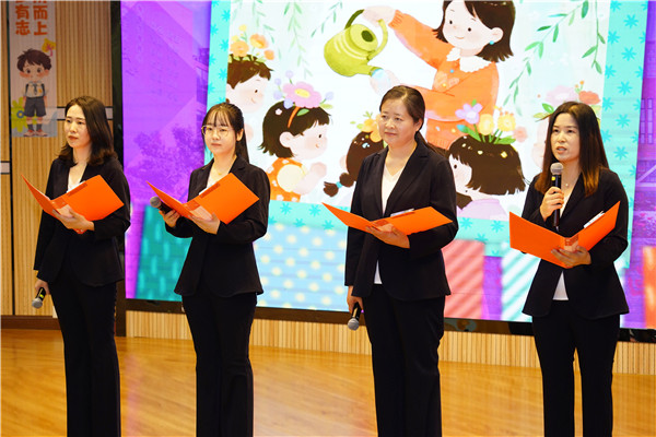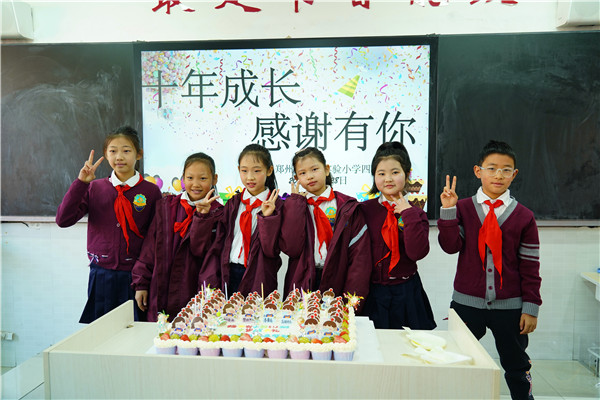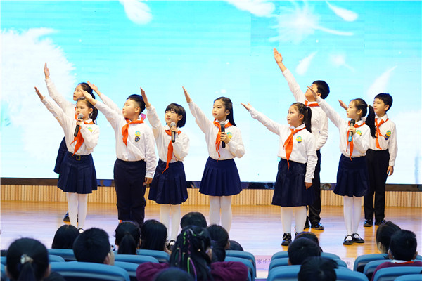 “感恩同行”环节同样动人。教师寄语短片温情上线,各科老师从课堂知识讲到成长细节,句句都是日常相处的真切感悟;班主任们则依次上台,为各自班级的孩子送上专属祝福,有的提及某个学生“从胆怯到勇敢的变化”,有的肯定大家“共同进步的努力”,字里行间满含师者的殷殷关爱与成长期许。而学子们以诗朗诵《十岁,我们向光而行》作为回应,清澈的声音里,既有对父母“十年养育”的感恩,也有对老师“三尺讲台耕耘”的敬意,更有对祖国“护我成长”的热爱,让感恩的种子在仪式中深深扎根。