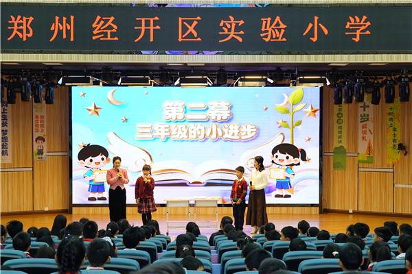 11月28日,郑州经开区实验小学报告厅内暖意融融、氛围庄重,以“拾光有礼,少年有志”为主题的四年级十岁成长礼分上下午两场温情启幕。347名学子与学校领导、全体任课教师及家长代表齐聚一堂,在充满温情的活动中,共同见证童年向少年跨越的里程碑,开启逐梦未来的崭新征程。