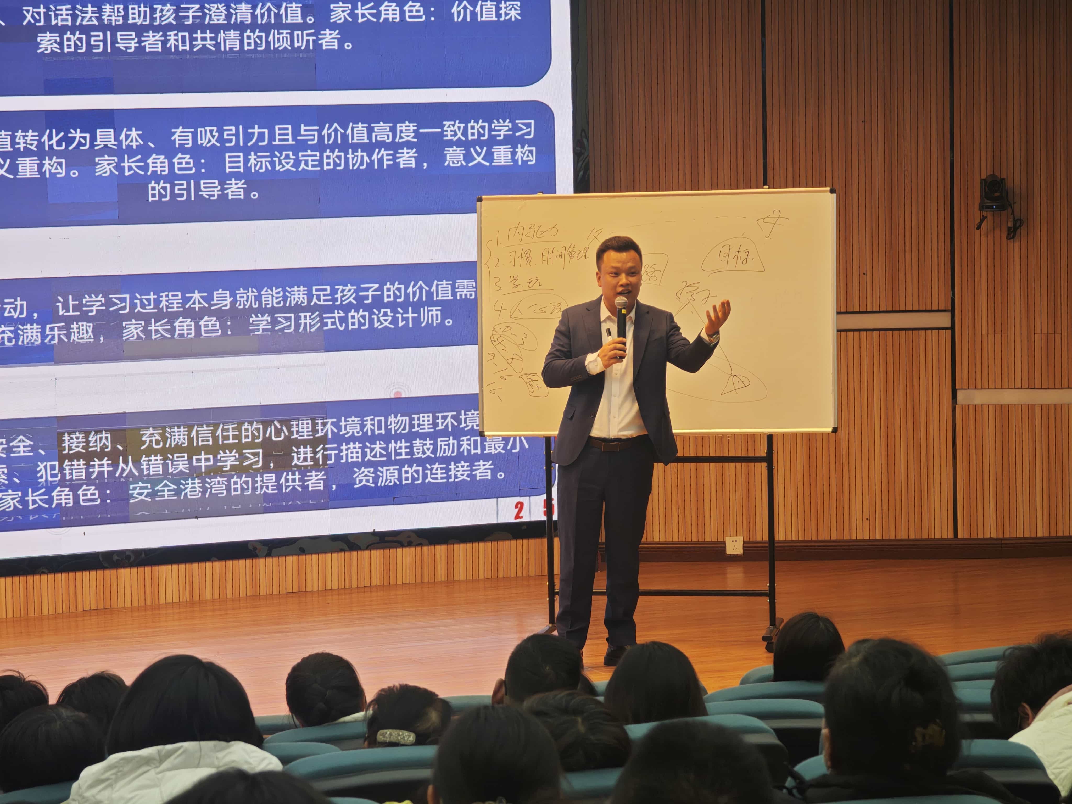 最让家长们走心的,是魏老师对“依赖共生”亲子关系的提醒:“孩子住校了家长空得慌,孩子选兴趣班先想‘爸妈会不会高兴’,这些都是‘过度捆绑’的信号。”他现场分享的自测清单,不少家长悄悄对照,会后还围着老师追问:“我家孩子总黏我,是不是得慢慢‘推’他独立?”
