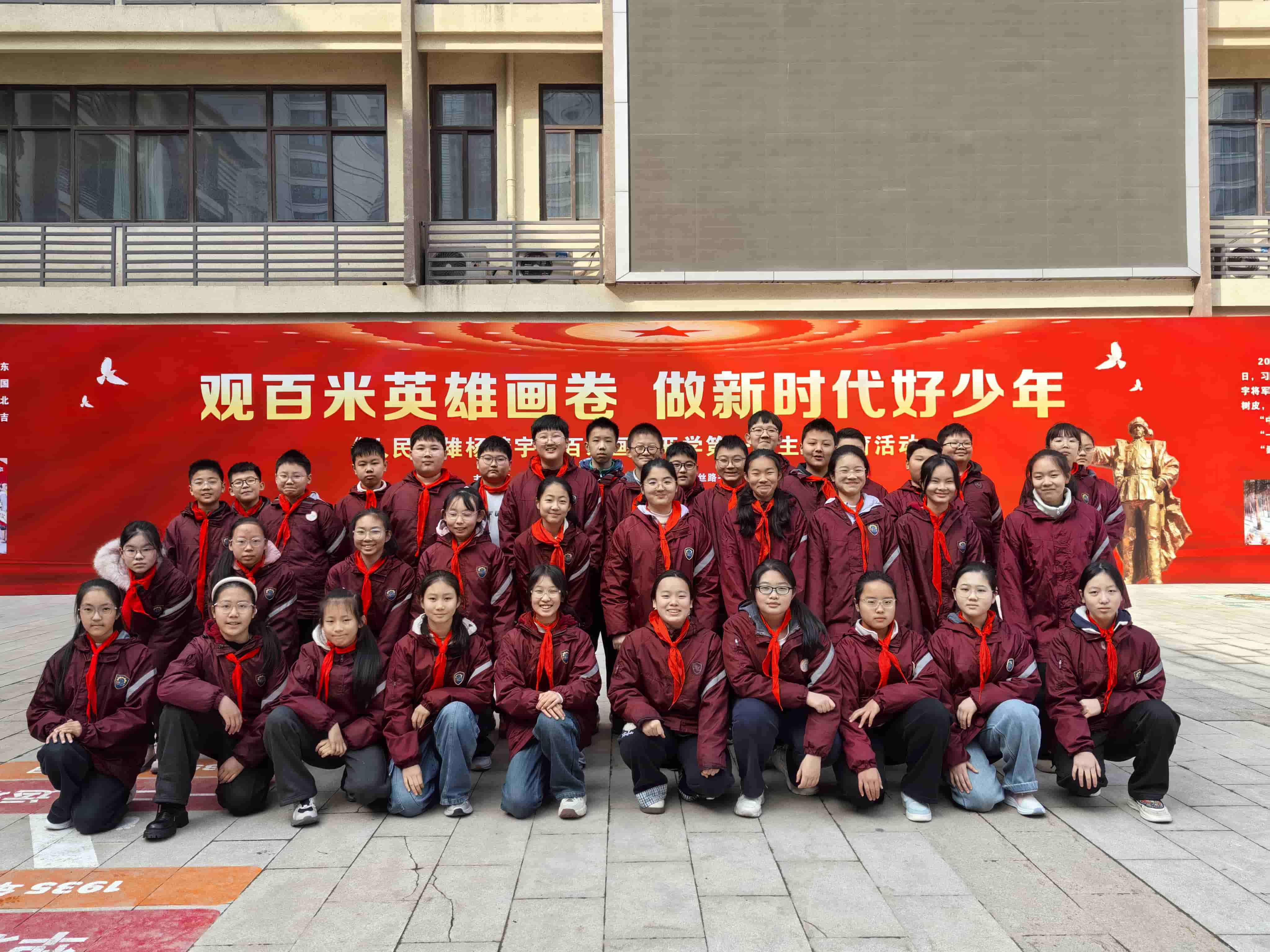 为传承红色基因,厚植爱国情怀,深化国防教育,3月5日下午,郑州经开区实验小学教育集团组织六年级全体学生前往郑州经开区八一中学,参观《人民英雄杨靖宇》百米画展,将“开学第一课”与沉浸式爱国主义、国防主题教育有机融合。