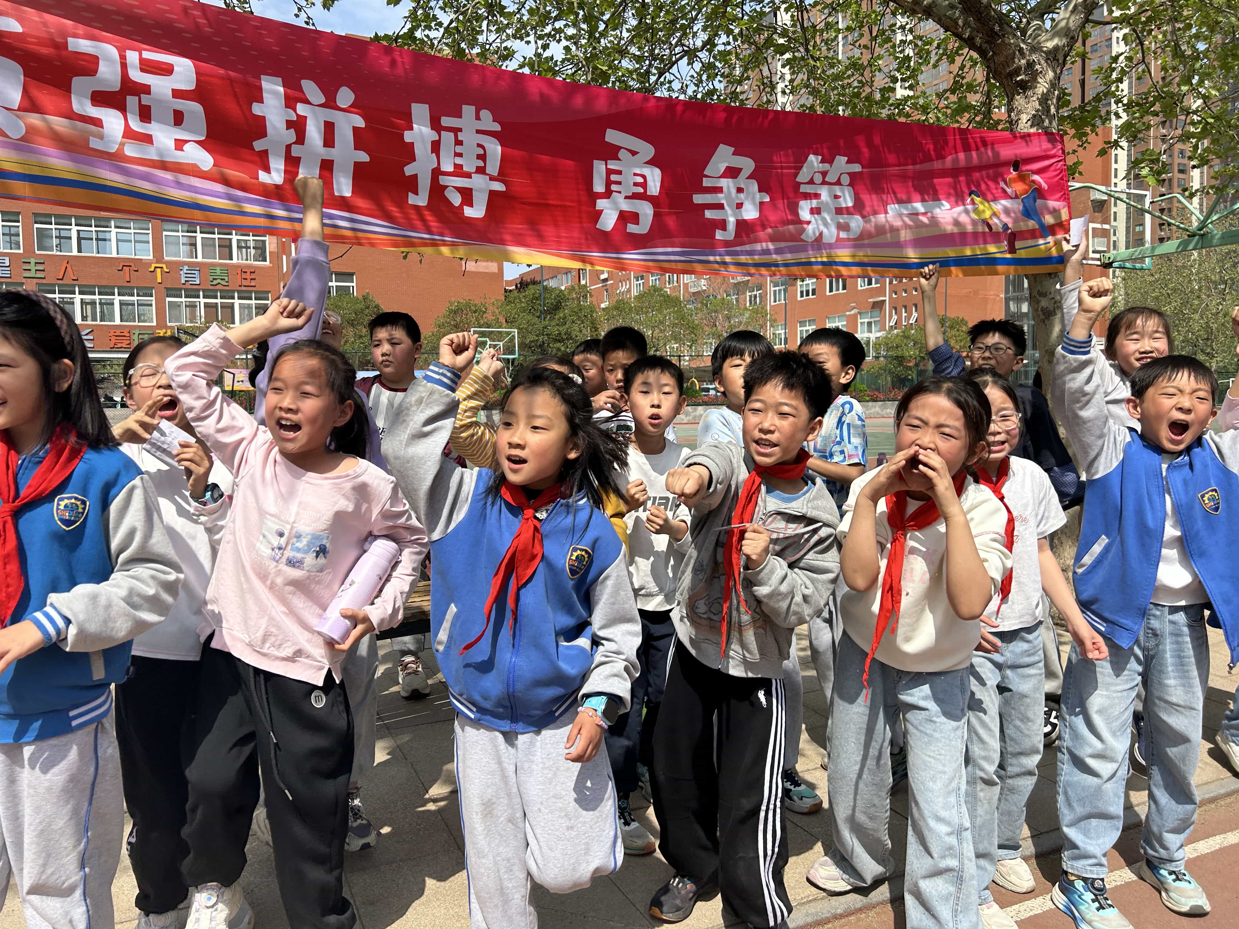 赛场之外,同样是一片热血沸腾的景象。实验小学教育集团总校区书记司岚岚也来到了比赛现场,与各班最热情的啦啦队,一起为运动员们呐喊助威。“加油!加油!”的声浪此起彼伏,震得操场都嗡嗡作响;有的同学手举精心制作的加油牌,挥舞着彩色小旗,用最响亮的声音传递着最纯粹的支持。