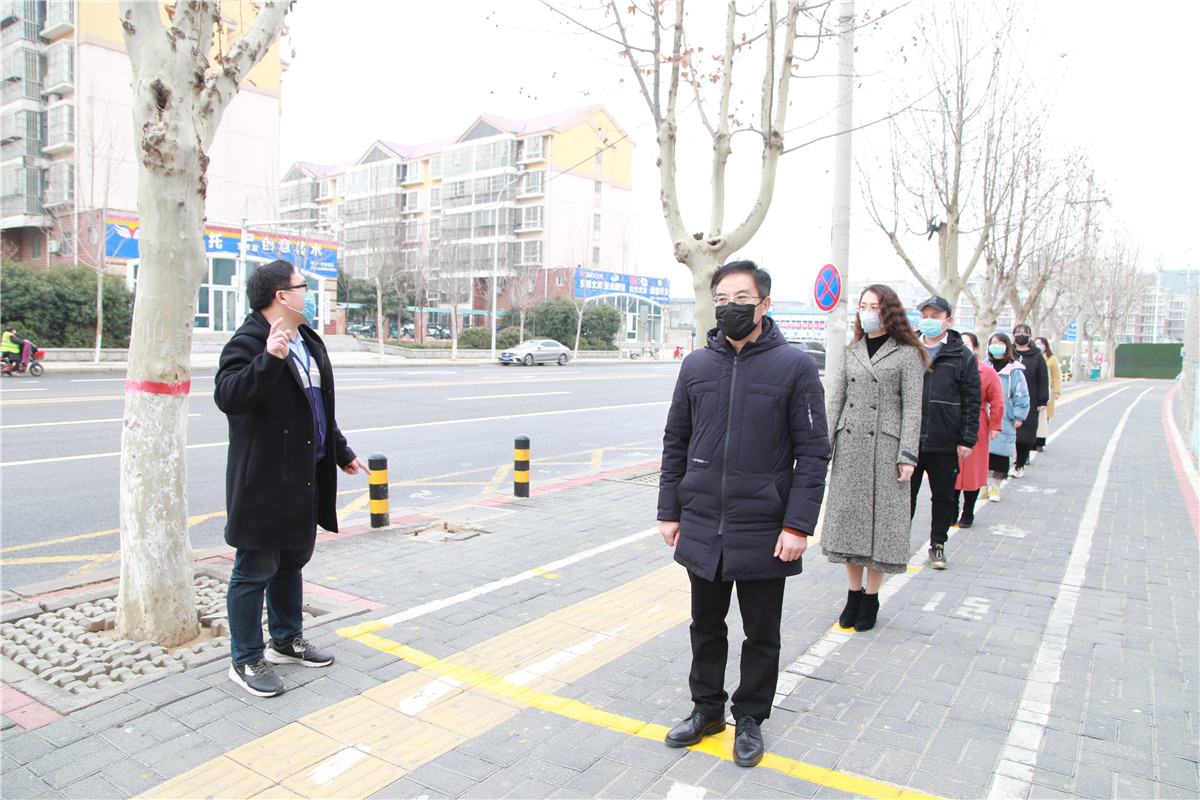 “请大家站在地面上的黄色方块上排队,进校园时保持这样的距离。”3月2日,郑州经开区外国语小学的校门口,行政人员和部分教师正在进行开学后的模拟演练。