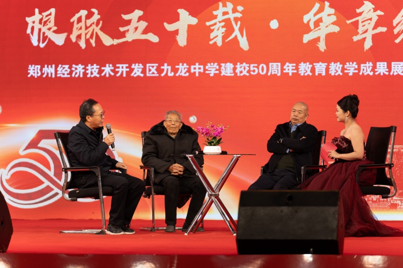 10月23日晚,郑州经济技术开发区九龙中学迎来建校50周年庆典,以“根脉五十载·华章续新篇”为主题的教育教学成果展暨高质量发展大会在学校灯光璀璨的操场举行。活动通过采访老校长,历届优秀毕业生发言和线上送祝福、艺术展演、荣誉展览等多种形式,全面展现了学校半世纪来的育人成果与奋进姿态,凝聚起新时代教育高质量发展的磅礴力量。