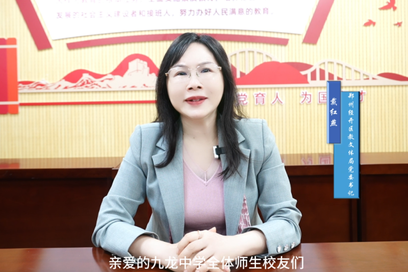 经开区教育文化体育局党委书记戴红燕线上致辞并送出祝福,郑州经开区先进制造业园区管委会筹备组副组长、校友席俊杰、经开区祥云办事处党工委书记马刘伟、经开区祥云办事处党工委副书记、办事处主任刘永梅、区教文体局党委副书记赵全保、经开区祥云办事处人大工委主任朱兴甫、区教文体局党委委员、副局长贾永宏、经开区祥云办事处副科级干部彭红伟、经开区公安分局祥云派出所指导员王进锋、经开区祥符卢村社区书记卢路昌,以及区教文体局机关各科室负责人、兄弟学校主要领导,九龙中学历任校长、退休教师代表、历届毕业生代表。代表历届校友发言的学生代表有:郑州外国语教育集团业务校长王延钊、哈尔滨工业大学博士生张雪敏、深圳市巨龙科教网络有限公司董事长朱建永、美国威斯康星大学博士、中国科技大学首席教授、博士生导师,中国千人计划成员,耶鲁大学名誉教授张海江,出席典礼活动,对九龙中学五十年来扎根教育、培育英才的贡献给予高度评价,并对学校未来发展寄予厚望。