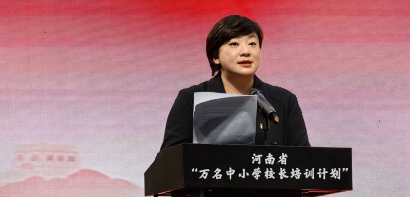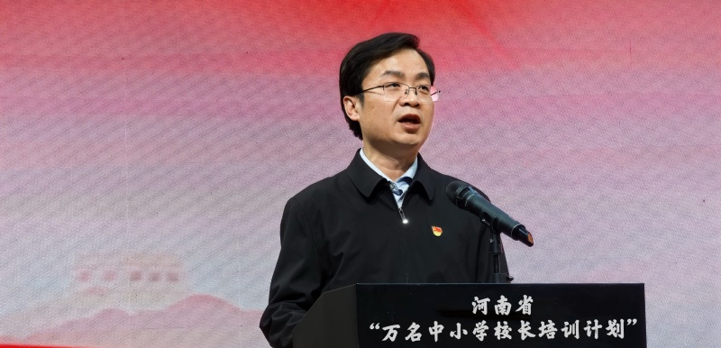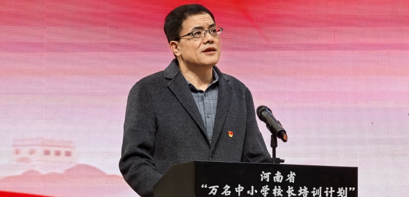 袁凯强在致辞中,以河南大学百余年办学史为切入点,回顾党领导中华民族从站起来、富起来到强起来的光辉历程。他谈到,从抗日战争时期坚持敌前办学,到新时代纵深推进基础教育改革,河南大学始终与党和国家的命运紧密相连。结合当前教育发展新形势,他向全体参训校长提出三点要求:一是以史铸魂强信念,将红色基因融入办学治校全过程,构建“党史+校史”育人体系,引导青少年从历史中感悟家国情怀,厚植爱党爱国爱社会主义的思想根基 ;二是以行践知勇担当,聚焦“双减”政策深化、五育融合落地、义务教育优质均衡发展等国家战略部署,用创新思维破解教育教学痛点难点,推动基础教育高质量发展;三是以学促干共提升,依托“万名中小学校长培训计划”这一省级平台,主动分享办学经验、碰撞教育思想,把先进教育理念和实践成果转化为推动区域教育发展的实际成效。