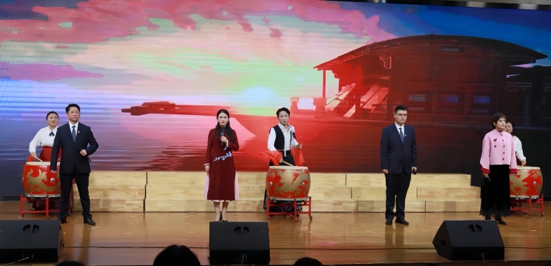 艺术传情环节,以“党史+教育为核心,借助多元艺术形式,推动红色文化与教育初心深度融合。朗诵作品《教育的初心》《历史的回响》,以时间为脉络,回溯了从革命时期“马背课堂”、建设时期“扫盲运动”到新时代“智慧教育”的发展历程 。朗诵者用质朴的语言、真挚的情感,展现不同历史阶段教育工作者的使命担当,引发全场校长强烈共鸣;《读中国》《百年交响》《英雄赞歌》《中国船》等节目,以铿锵有力的语调、气势恢宏的演绎,从追忆革命岁月里的教育坚守,到诠释新时代教育工作者的使命追求,将“铭记历史、开创未来”的信念,转化为推动教育事业发展的精神动力,进一步凝聚起“以红色文化育人、以教育力量强国”的共识。