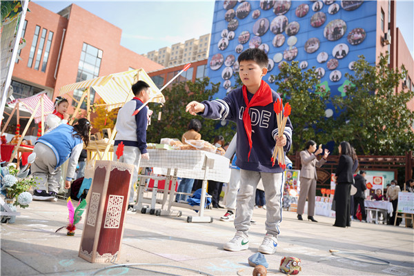 11月11日,郑州经开区实验小学广场上彩带飘扬、墨香萦绕,为期一天的2025年“展中华精粹,谱传承新篇”传统文化节正式拉开帷幕。